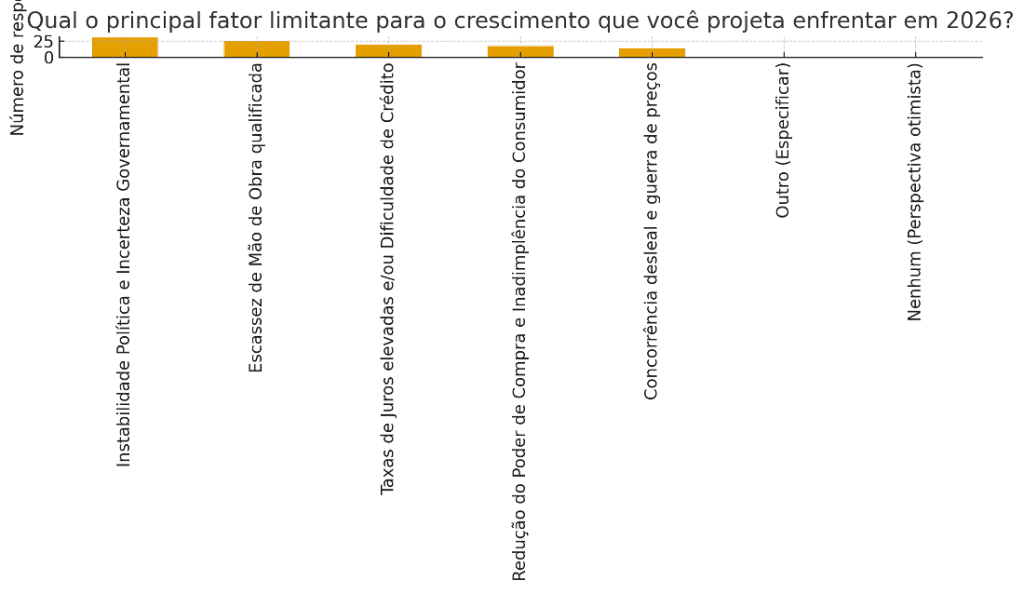Ao serem questionados sobre o principal fator limitante para o crescimento em 2026, os decisores apontam, com força, três vetores: