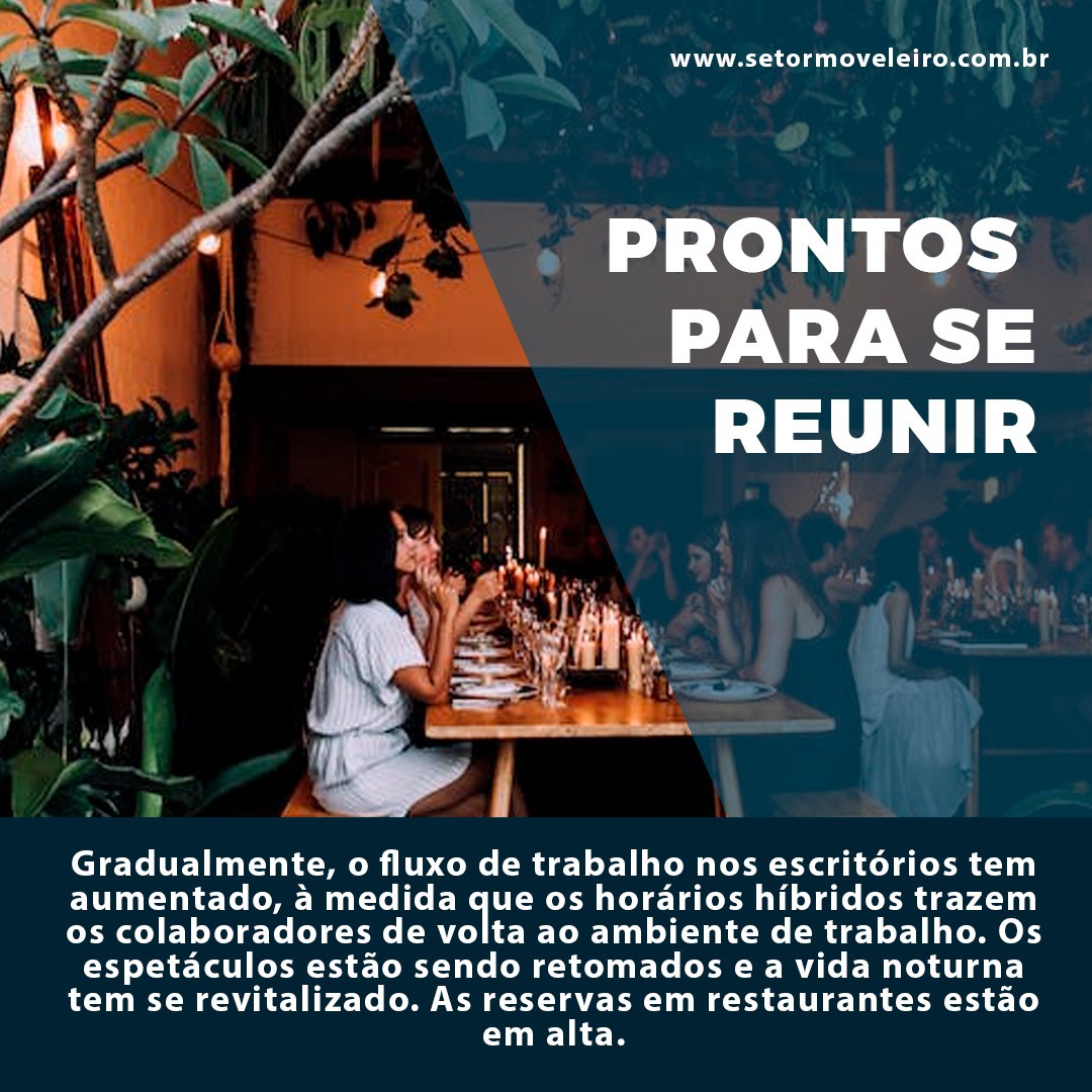 As experiências da vida real, encontros sociais e o retorno das atividades é tudo o que desejam as pessoas dos tempos atuais. Os consumidores se cansaram de ficar confinados, ao invés disso, eles estão se arrumando e indo às compras. No entanto, sob o olhar do Setor Moveleiro, é preciso entender que as pessoas também vão sair para irem à casa uma das outras, e, assim, elas também continuam investindo, especialmente em mobiliário para receber bem os hóspedes ou as visitas.