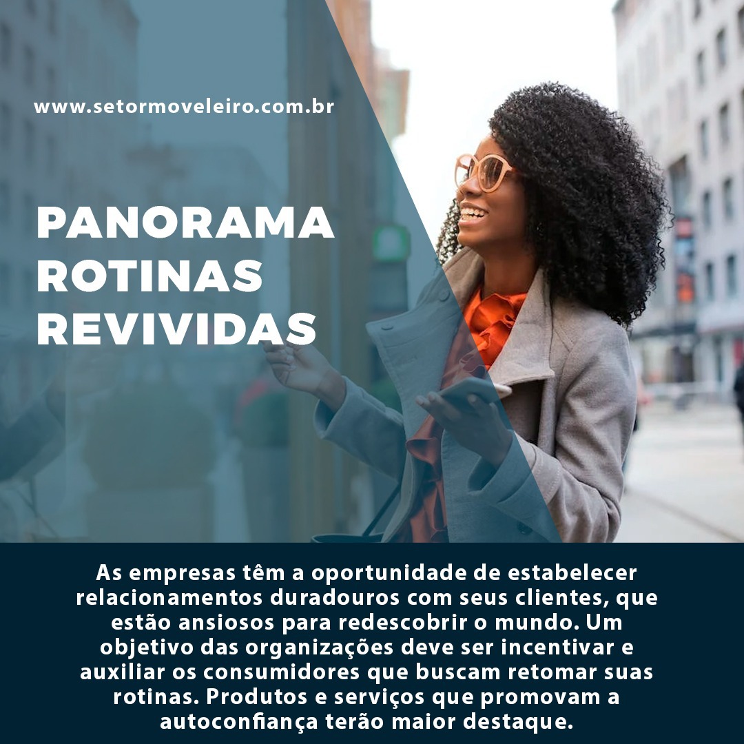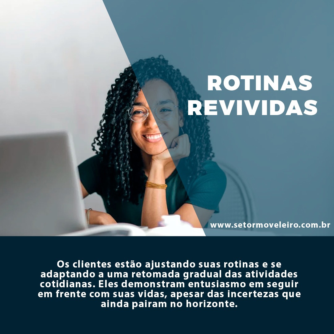 Voltar às Rotinas Revividas é um objetivo para que as empresas foquem em incentivos e apoios aos consumidores que desejam redescobrir o mundo. As marcas têm a chance de criar relacionamentos duradouros com novos produtos e serviços que impulsionam a autoconfiança dos clientes. Portanto, prevalecerão e poderão revigorar o engajamento, empresas que despertem a aventura e o entusiasmo com a marca.